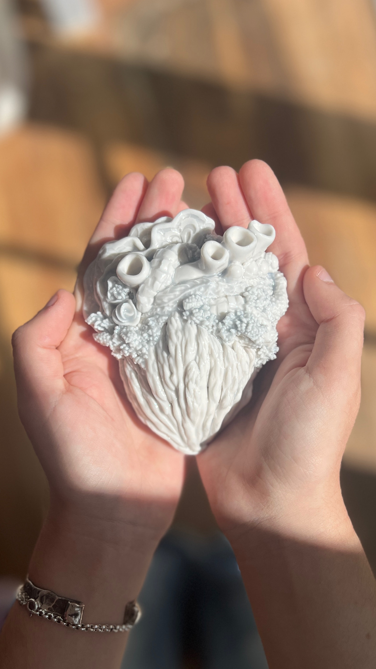 My porcelain hearts balance the darker explorations of my story cell and trauma based works. They celebrate, honour and treasure what is precious.