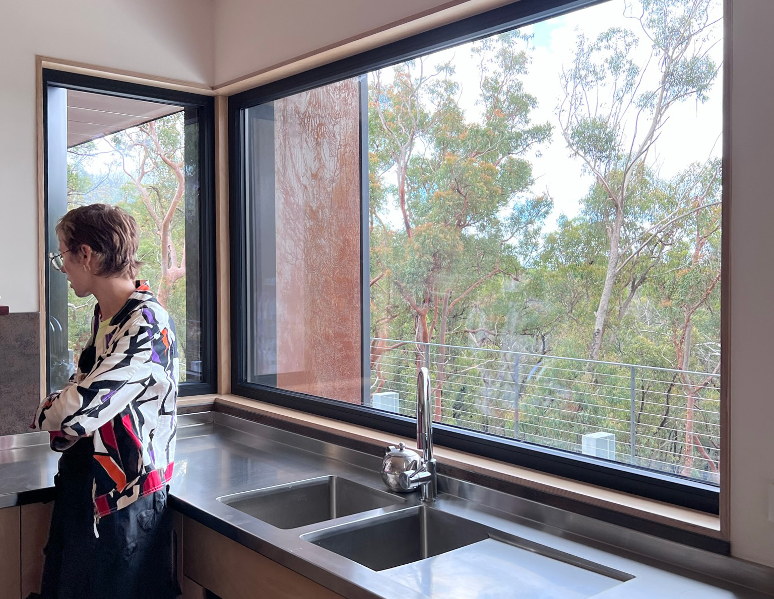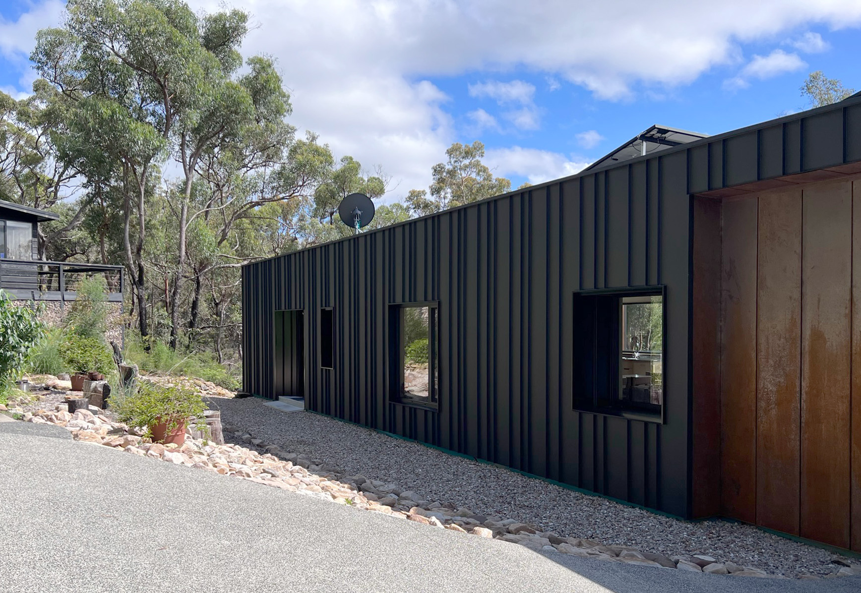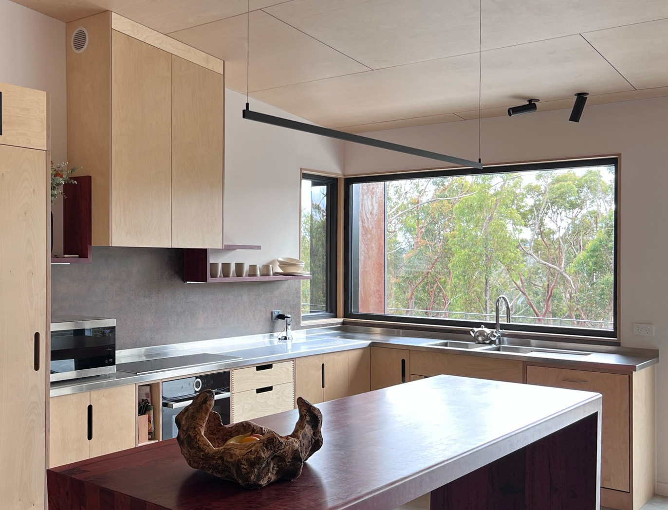 The original house burnt down in the 2019-2020 bush fire. Our task to build an Off-grid Flame Zone in the same location as the old. The design utilises high performance principals, like Low-E double glazing, airtight construction, thermal bridge free details. The result a home that needs little additional heating or cooling, compared to a standard mountains home.