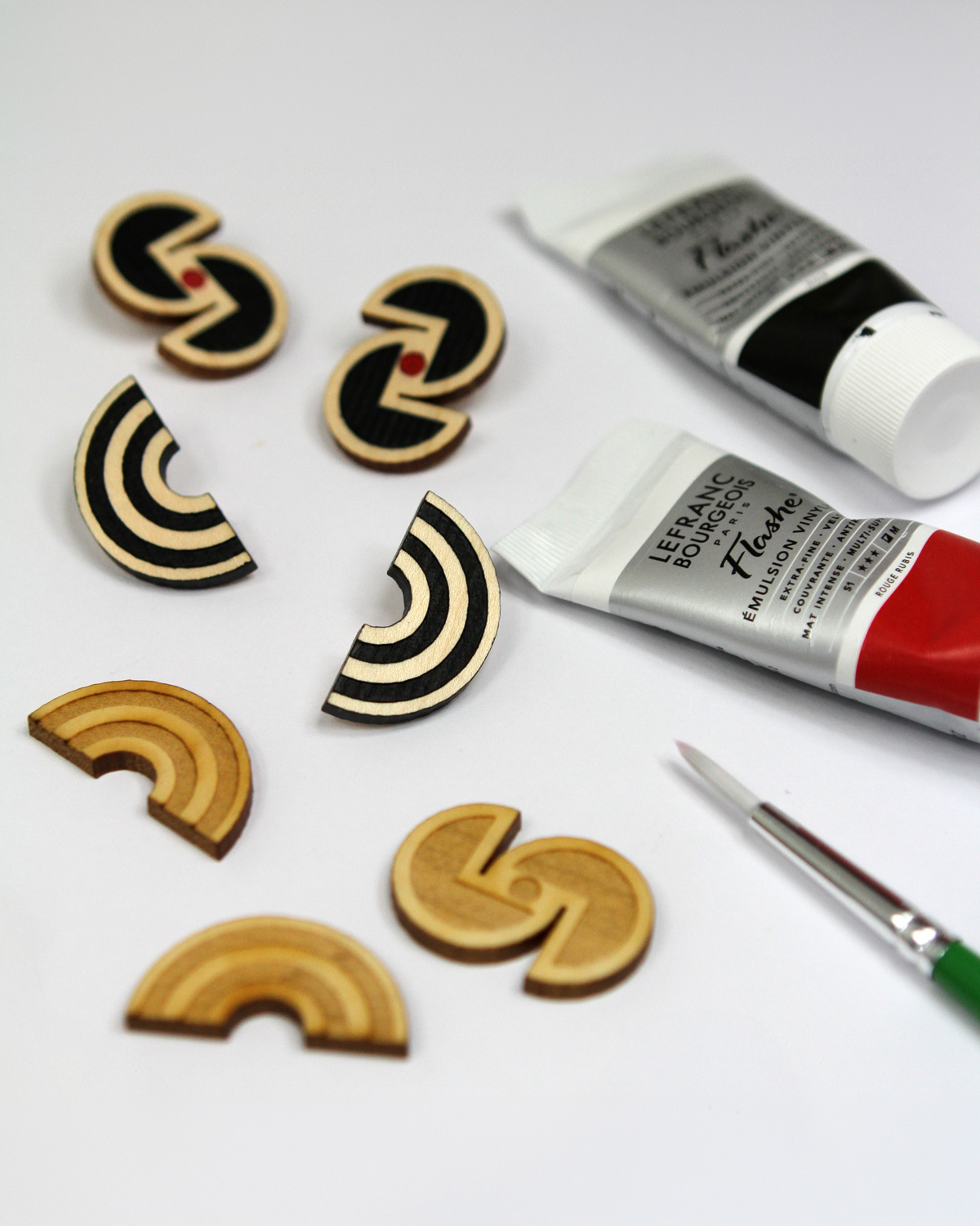 A collection of earring designs inspired by iconic women of mid-century design. Each piece is laser-cut from sustainably sourced maple and hand-painted in small batches, balancing architectural precision with the warmth of natural wood.