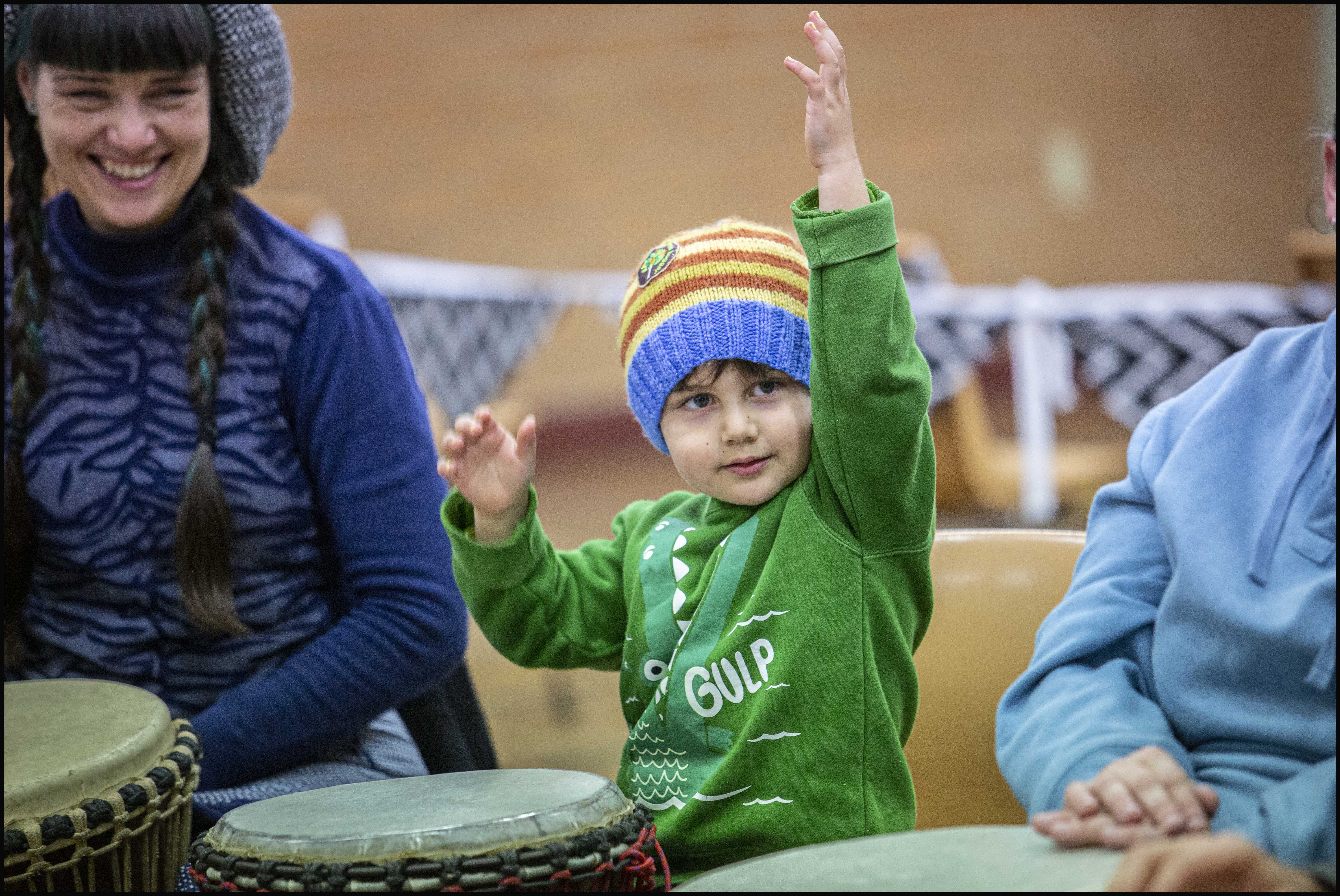 Yoga for all ages, Drumming, Weaving, Macramé, Circus props play space, Kids paint a musical egg shaker, Kids music & movement classes.